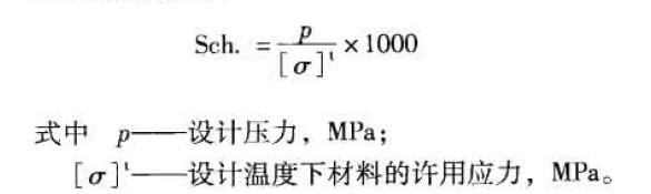 管子表號(hào)(Sch.)是設(shè)計(jì)壓力與設(shè)計(jì)溫度下材料的許用應(yīng)力的比值乘以1000,并經(jīng)圓整后的數(shù)值,即